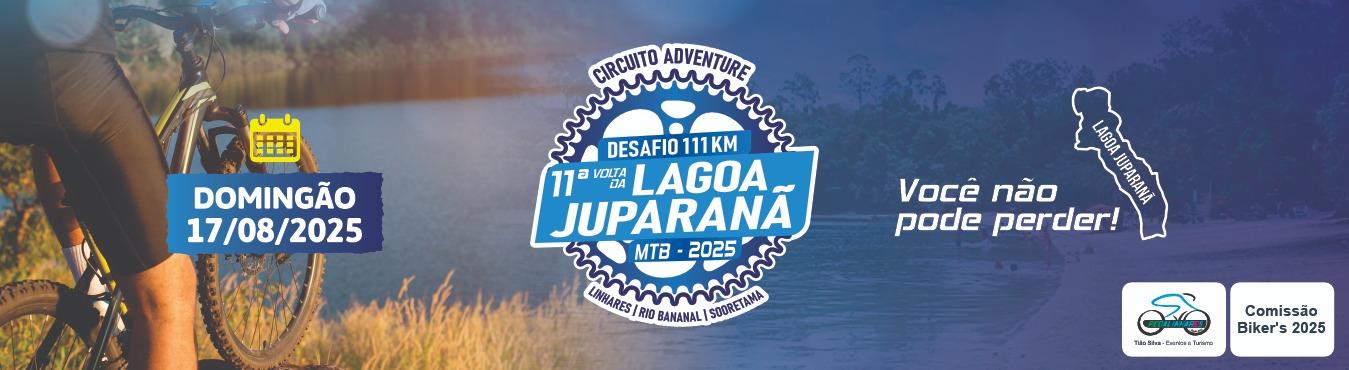 PERCURSO: Saindo de Linhares, será contornado a lagoa Juparanã, passando por localidades nos municípios de Rio Bananal e Sooretama, retornando para arena em Linhares em circuito previamente demarcado.