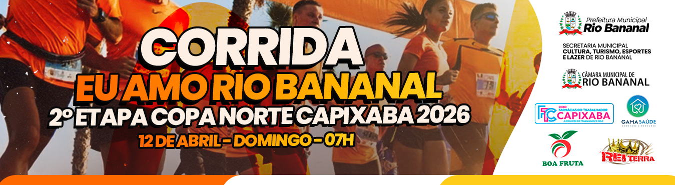 A 2ª etapa da copa norte capixaba de corrida de rua, será realizada no dia 12 de ABRIL de 2026 na cidade RIO BANANAL – ES, com distâncias de 5 km e 10 km e caminhada de 5k. Poderão participar da corrida pessoas acima de 15 anos, de ambos os sexos, desde que devidamente inscrita no evento, para caminhada a idade inicia à partir de 10 anos, (devidamente acompanhada pelo seu responsável).