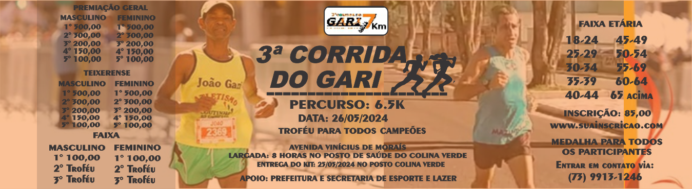 ENTREGA DO KIT DE CORRIDA (Sábado dia 25 de Maio de 2024) apartir das 13:00 no posto de saúde do colina verde (local da largada), (Domingo dia 26 de Maio de 2024) no local da Largada a partir das 06h30min do dia do evento até as 7h:45hs exclusivo para atletas que não residem na cidade. DO KIT DE PARTICIPAÇÃO (PÓS CORRIDA) Kit Corrida Ao final da prova, os participantes da corrida deverão retirar o kit de participação composto de medalha de participação e Agua e frutas. Observação: OS KITS DE PARTICIPAÇÃO NÃO SERÃO ENTREGUES APÓS O TÉRMINO DO EVENTO, NEM NOS DIAS POSTERIORES.
