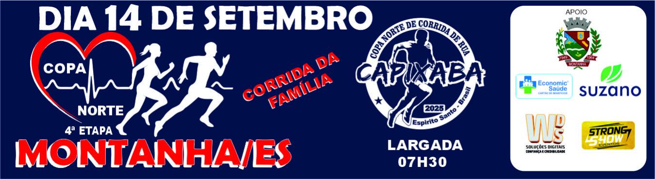 A 4ª etapa da copa norte capixaba de corrida de rua, com distâncias de 5 km e 10 km e caminhada de 5k. Poderão participar do evento pessoas acima de 14 anos, de ambos os sexos, desde que devidamente inscrita no evento, para caminhada a idade inicia à partir de 10 anos, (devidamente acompanhada pelo seu responsável).