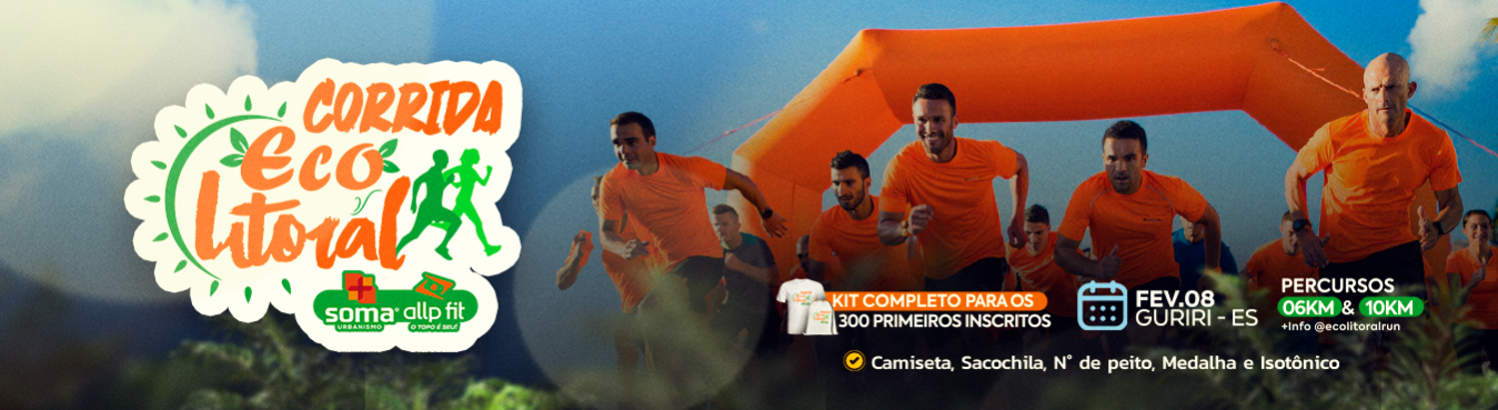 A Corrida Eco Litoral Guriri, será realizada no dia 08 de fevereiro de 2026, domingo, no Balneário de Guriri – São Mateus – ES