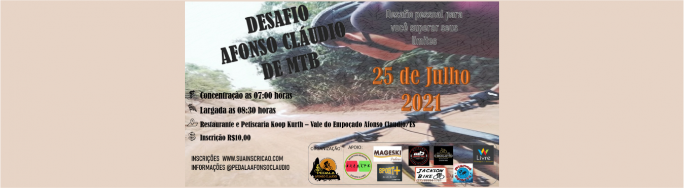 Falaaaa Galera do Pedal Vem aí um desafio (SEGUIMENTO PREMIADO ) top pra quem gosta de MTB Vão ser duas categorias, Pró e Sport Então já deixa salvo na sua agenda a data do dia 25/07/2021 e fique de olho que breve postaremos as informações #pedalaafonsoclaudio Bóraaaaa